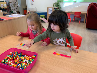 Terwijl de derdes bij Elke waren , speelden de tweede kleuters een kleuren/beweegspel.
